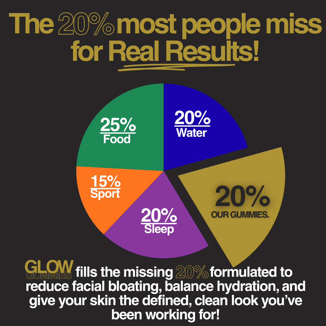 Took every morning 2 Gummies straight for 30 Days and in second week I got more compliments about my skin and a sharper jwaline, so basically everything got better that made me before unattractive. The GLOW Gummies are a real Gamechanger.