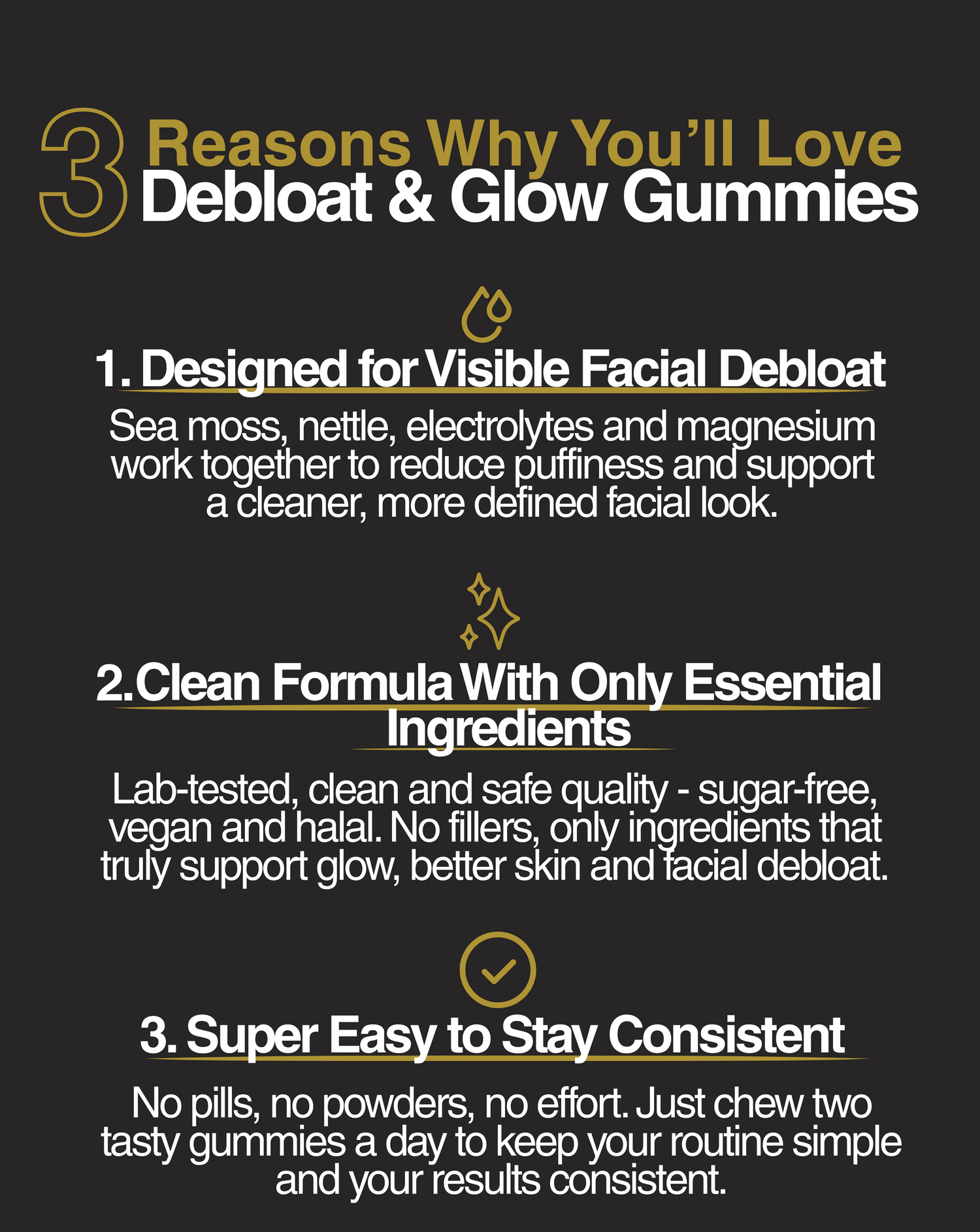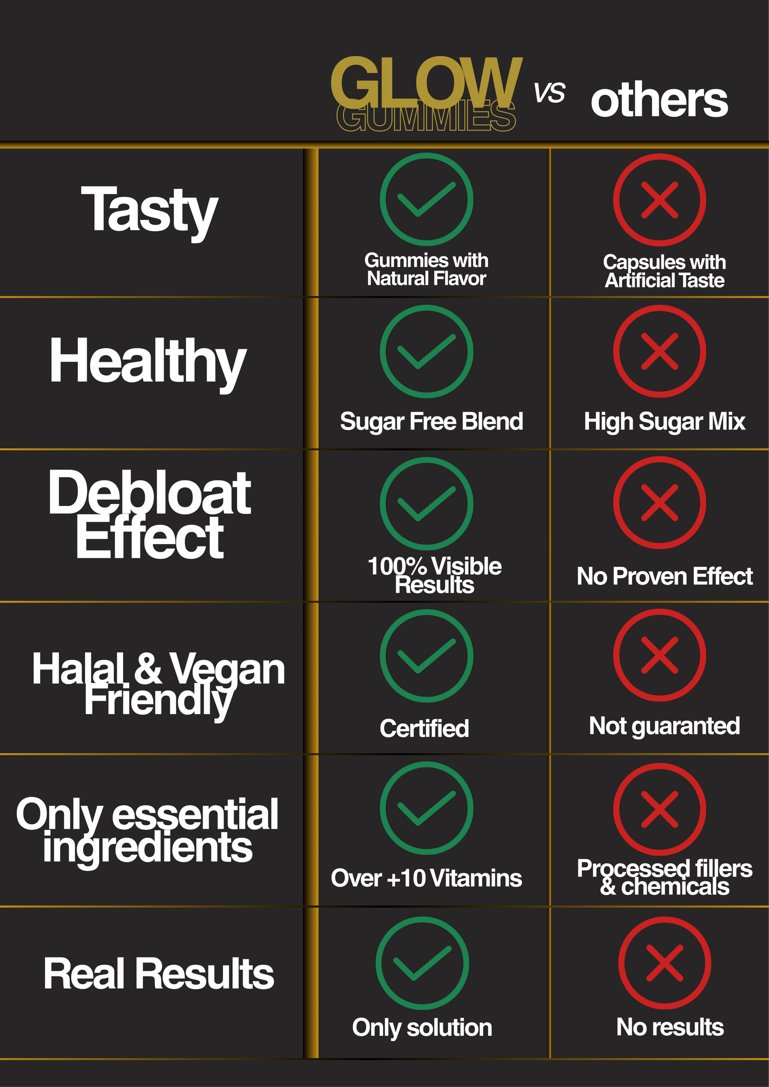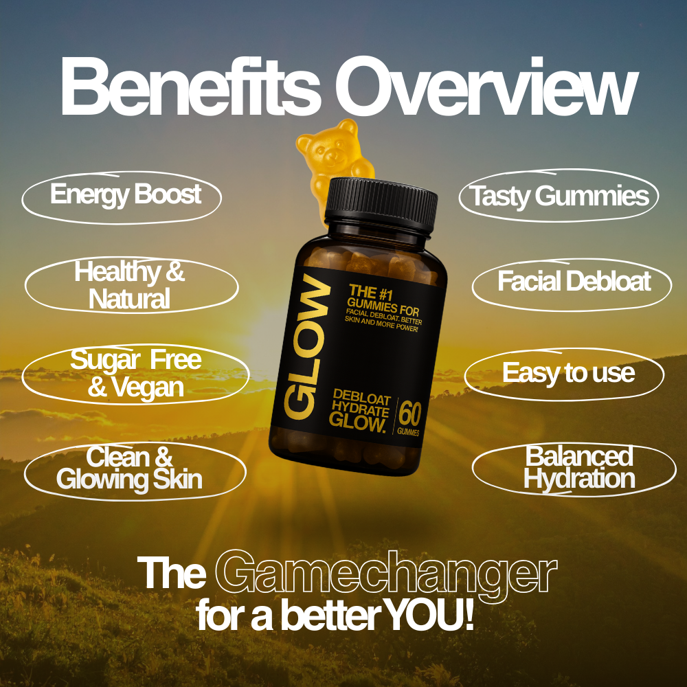 The gummies work from the inside out – they provide nutrients and herbs that help flush out excess water (reducing facial bloating), nourish your skin from within, and support your metabolism for a natural energy lift. By targeting digestion, skin health, and energy production, Glow Gummies help you look and feel your best each day.