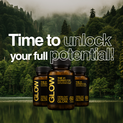 Glow Gummies contain a blend of skin-loving vitamins, minerals, and natural plant extracts. Key ingredients (like Vitamin C, biotin, and herbal extracts such as dandelion and green tea) are included to help reduce puffiness, support clear glowing skin, and boost your natural energy levels.