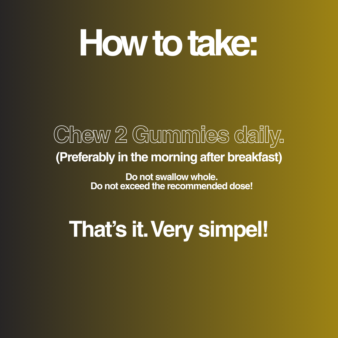 Simply chew the recommended serving of Glow Gummies each day (for example, 2 gummies daily). You can take them at any time that suits you – many people enjoy them in the morning – and consistency is key, so try to take them around the same time every day for best results.